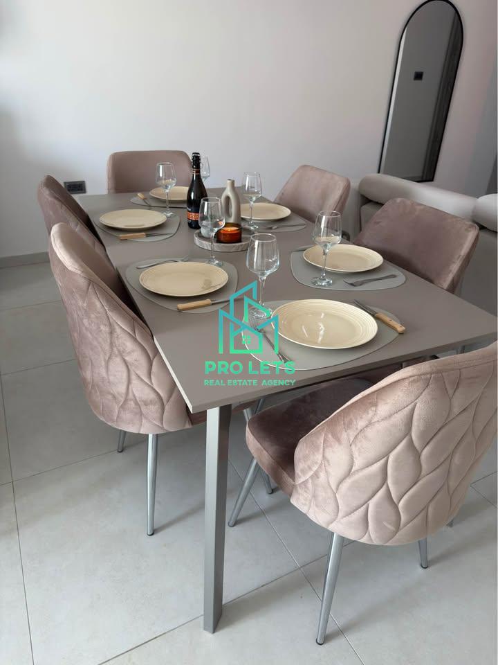 A brand new, highly finished 2 bedroom apartment located in a quiet residential area of Siġġiewi, surrounded by countryside and away from busy areas, offering peace and tranquility. This property is being offered for its first use. The apartment features a spacious main bedroom with a private ensuite, a spare bedroom which can also be used as a home office, a main bathroom, and a separate washroom. It includes a modern kitchen with a large island, a 6-seater dining table with an additional 3 seats at the island, and a comfortable living area with recliner sofas. Stylish gypsum ceilings with beautiful lighting are featured throughout the apartment, creating a modern and elegant feel. The property also enjoys both front and back balconies, allowing plenty of natural light and outdoor space. Finished to a high standard and designed to offer both comfort and style. To maintain the quality and condition of this brand new property, pets are not permitted.