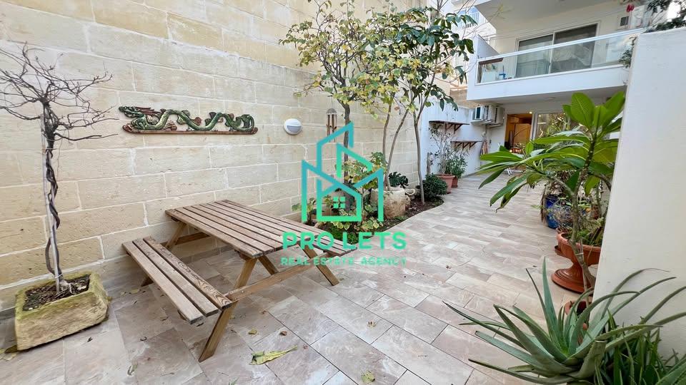 Spacious 2-Bedroom Ground Floor Apartment with Large Garden in a Prime Location 🏡 This charming 190sqm fully air-conditioned ground-floor apartment (100sqm internal, 90sqm garden) offers a perfect blend of indoor and outdoor living, situated in a quiet residential area just minutes away from  St. Julian’s, and Paceville. Key Features: 🛋️ Indoor Space: • Sizable open-plan kitchen, living, and dining area. • Main bedroom with an ensuite bathroom. • Second bedroom overlooking a serene internal yard feature. • Large guest bathroom. • Small washroom for added convenience. 🏕️ Outdoor Space: • A beautifully landscaped 90sqm garden with large trees that bloom pink and purple flowers in spring. • Outdoor room ideal for storage or a garden office with stunning views. • Large BBQ area and picnic-style outdoor table, perfect for entertaining. • Relaxing two-person hammock for lazy afternoons. • Comfort & Convenience: • Fully air-conditioned throughout for year-round comfort. 📍 Location Highlights • Conveniently surrounded by local amenities: • 24/7 convenience store just around the corner. • Hairdressers, barbers, and fitness facilities nearby. • Close to a children’s park and outdoor gym. • A short walk to the cinema, gym/spa, and popular dining and nightlife areas. This apartment is ideal for those who value a peaceful home environment while enjoying proximity to vibrant city life. Don’t miss this rare opportunity to rent a property that offers both comfort and lifestyle.